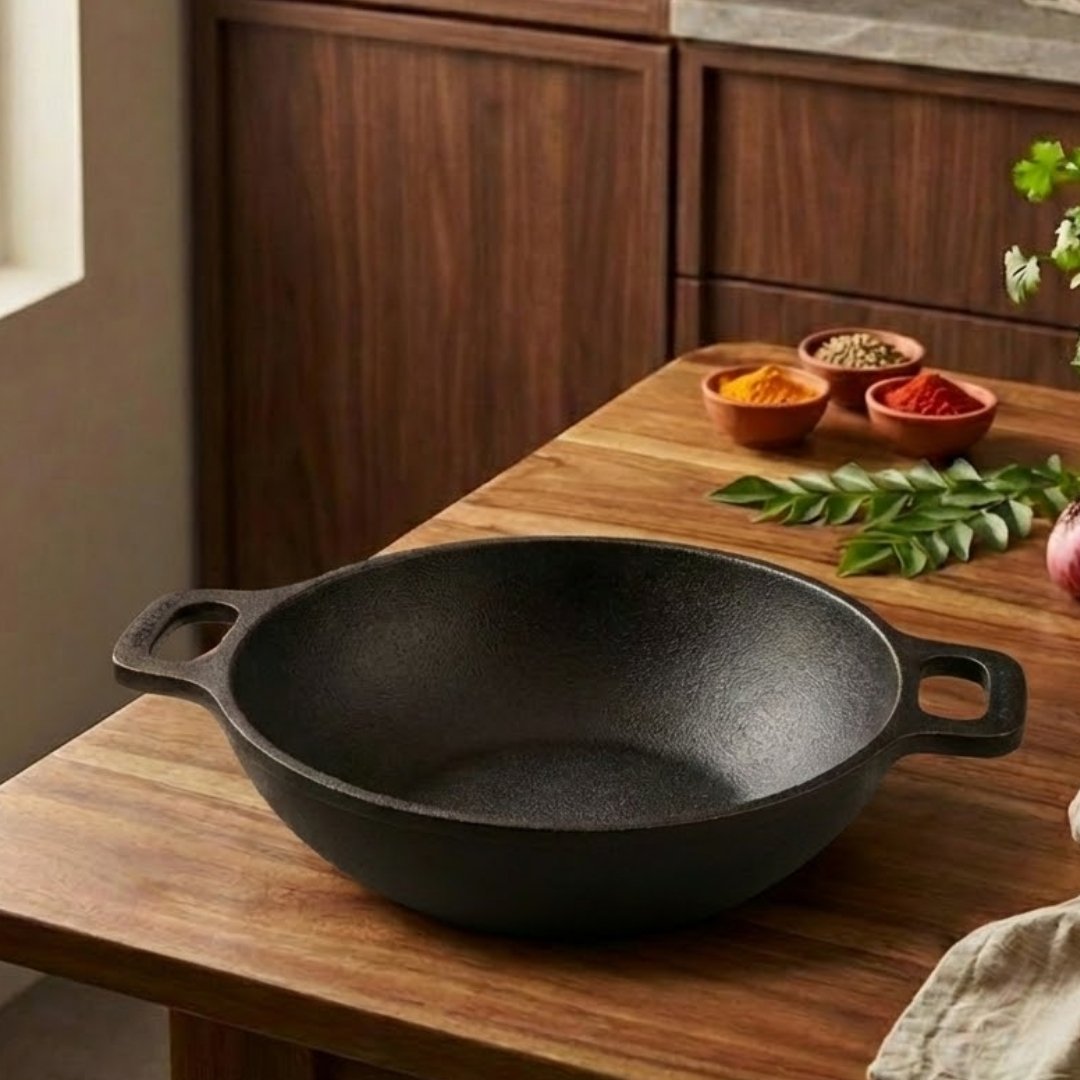 - Durability: The Premium Cast Iron Kadai wok is exceptionally durable and can endure for generations with proper care. This longevity is both cost-effective and eco-friendly, reducing the need for frequent replacements.